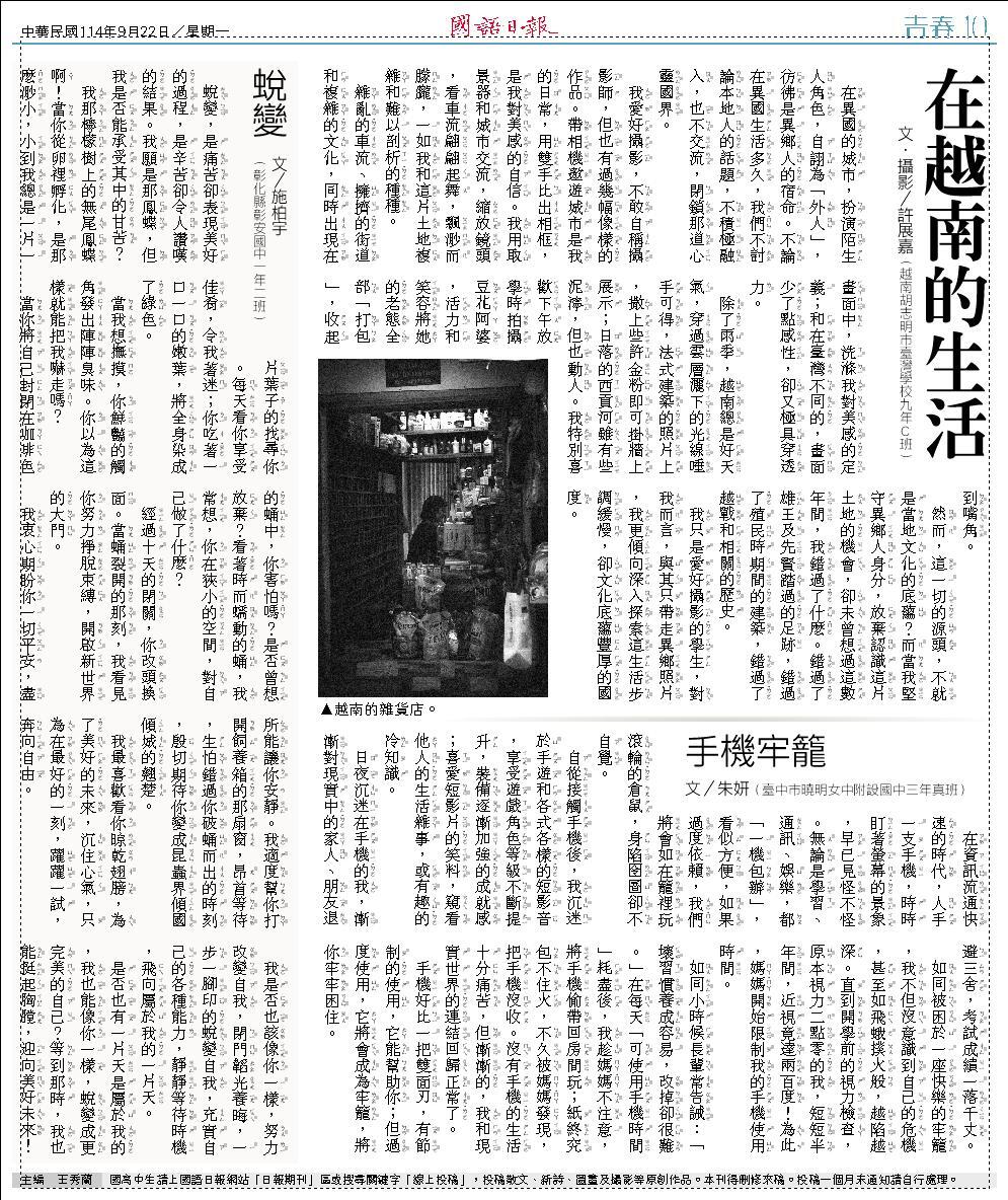 【圖資中心】九年C班許O嘉同學國語日報投稿