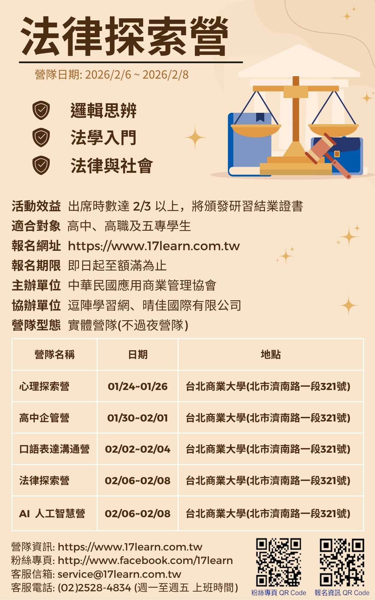 【輔導室】2026全國法律探索營 開放報名中
